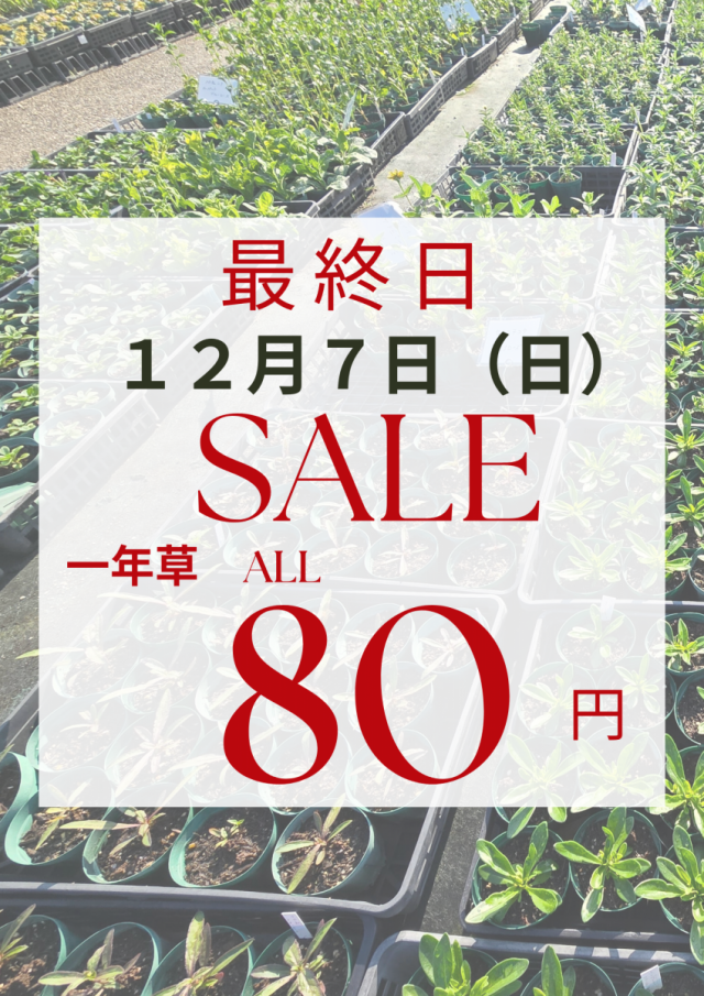 花苗販売の最終日が12月7日(日)マルシェの日までとなります。 当日は一年草が80円にてお求めいただけます。 この機会にぜひ、ご利用ください!
