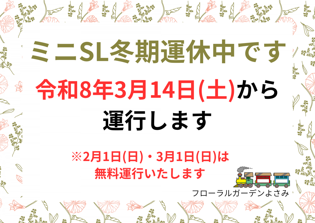 ミニSL運行中止のお知らせ(令和7年9月20日土曜日)