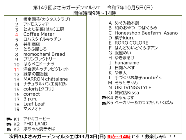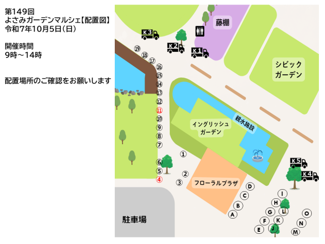 HOME > よさみガーデンマルシェ > 第149回よさみガーデンマルシェ 令和7年10月5日 配置図