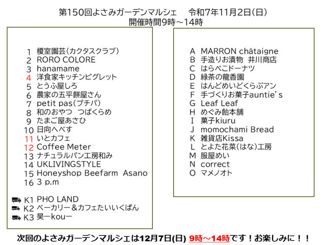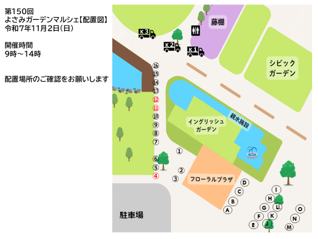 HOME > よさみガーデンマルシェ > 第150回よさみガーデンマルシェ 令和7年11月2日 配置図