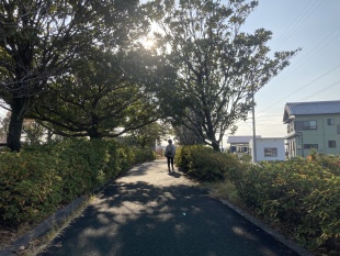 ガーデン外周のジョギングコースで朝日を浴びながら早朝ウォーキングを行い、