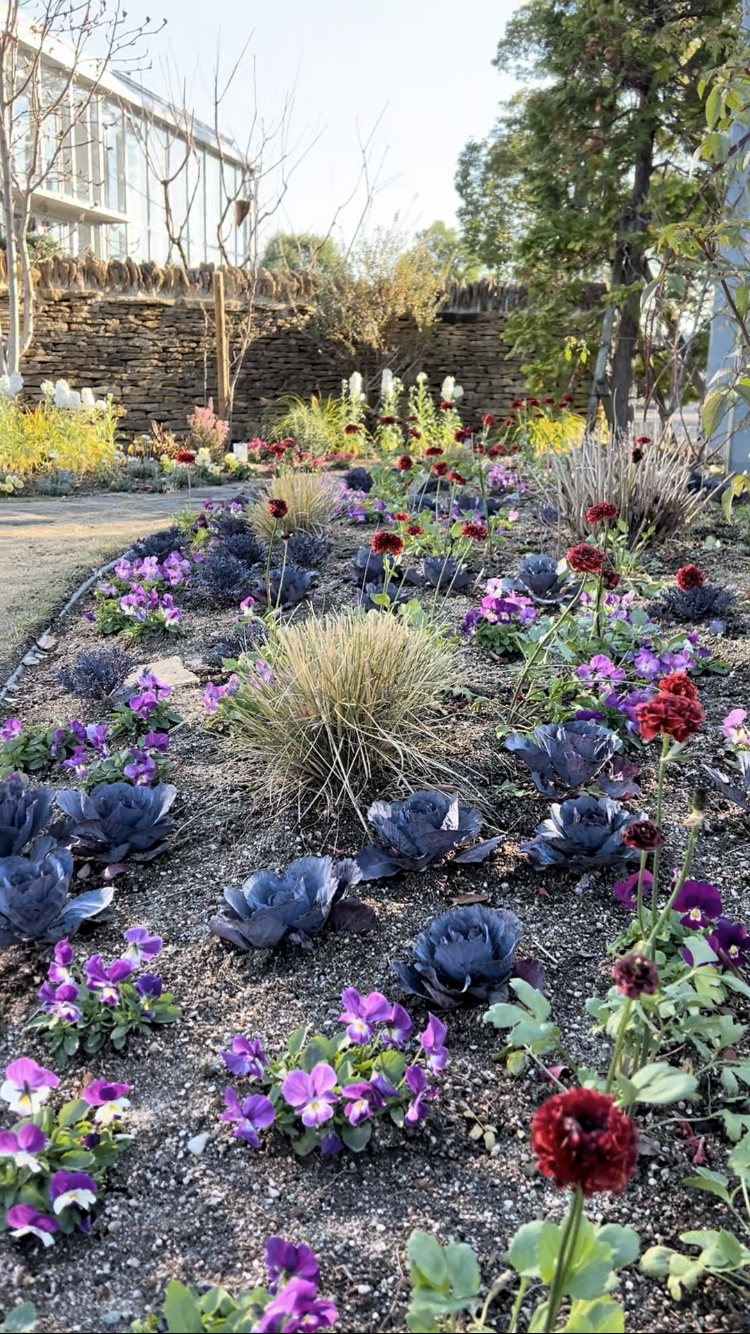 園内を見渡すと植物たちは冬支度をしていて中々たくさんのお花たちに会うことは難しいですが、イングリッシュガーデンでは様々なお花を観ることができます。